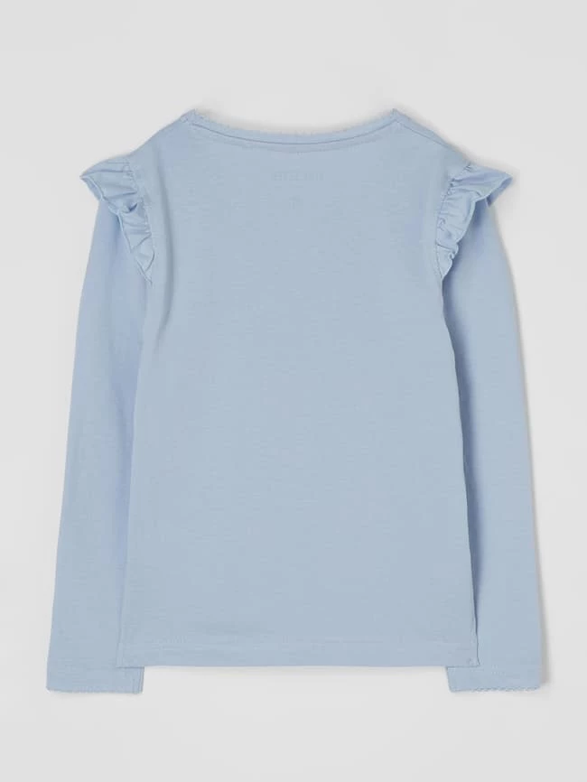 Das Longsleeve von BLUE SEVEN ist aus reiner Baumwolle gefertigt. Es kommt in gerader Passform mit Rundhalsausschnitt, Rüschen und Print.