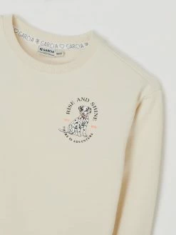 Das Sweatkleid von Garcia ist aus einem Baumwoll-Elasthan-Mix gefertigt und leicht ausgestellt geschnitten. Es kommt mit Rundhalsausschnitt, überschnittenen Schultern und Print.