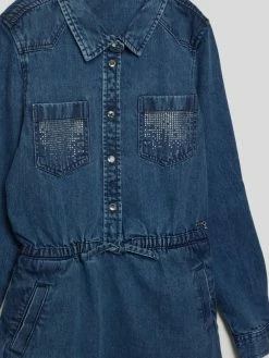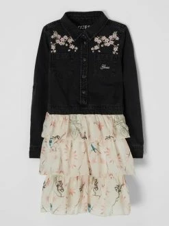 Das Kleid von GUESS ist aus einer Baumwollmischung gefertigt. Es zeigt sich in lockerer Passform mit Oberteil aus Denim, regulierbarer Ärmellänge und Rockteil aus Chiffon.