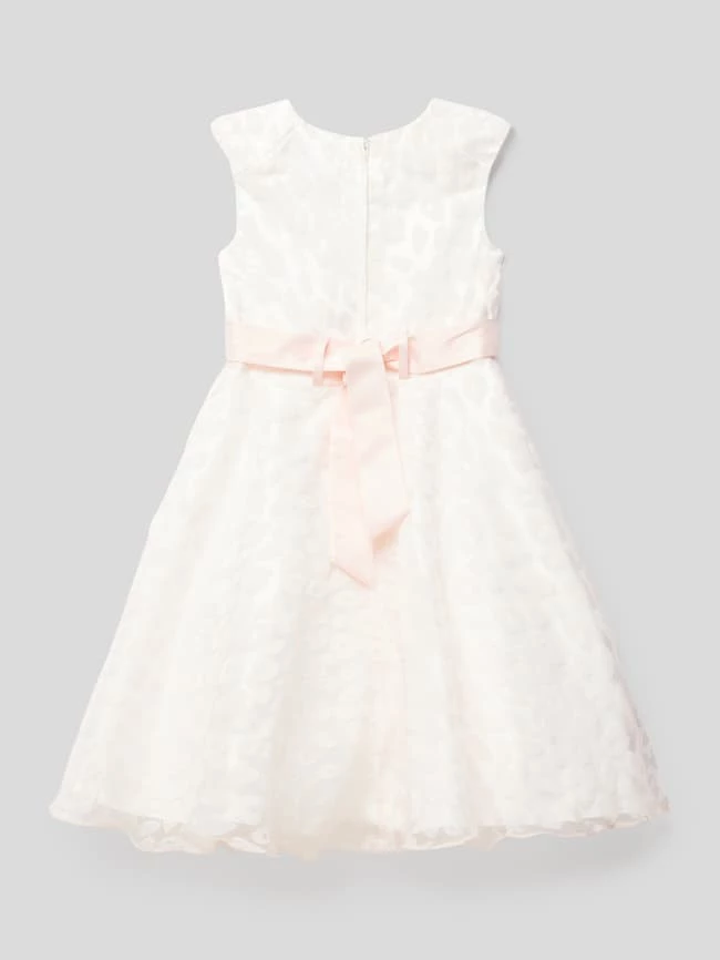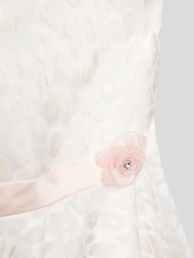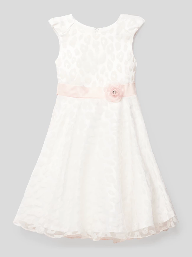 Das Kleid von happy girls ist aus einem Viskose-Mix gefertigt und tailliert geschnitten. Es zeigt sich in unifarbenem Design mit Allover-Muster sowie Taillenband mit floralem Detail.