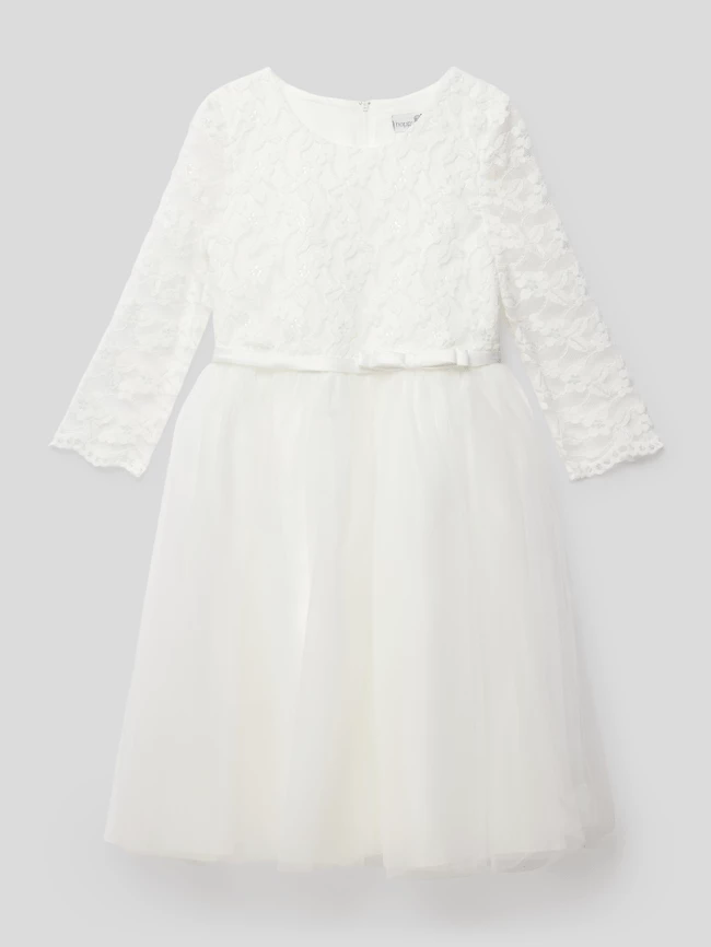 Das Kleid von happy girls ist aus einem strapazierfähigen Material gefertigt und tailliert geschnitten. Es zeigt sich mit Schleifen-Detail, ausgestellter Rock-Partie sowie Ärmeln aus semitransparentem Obermaterial.
