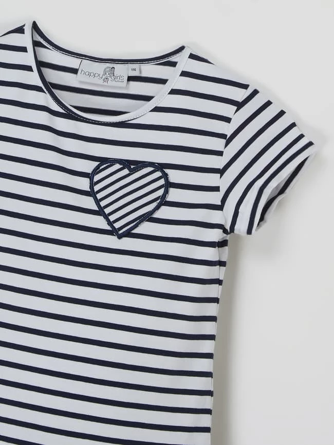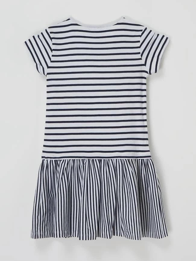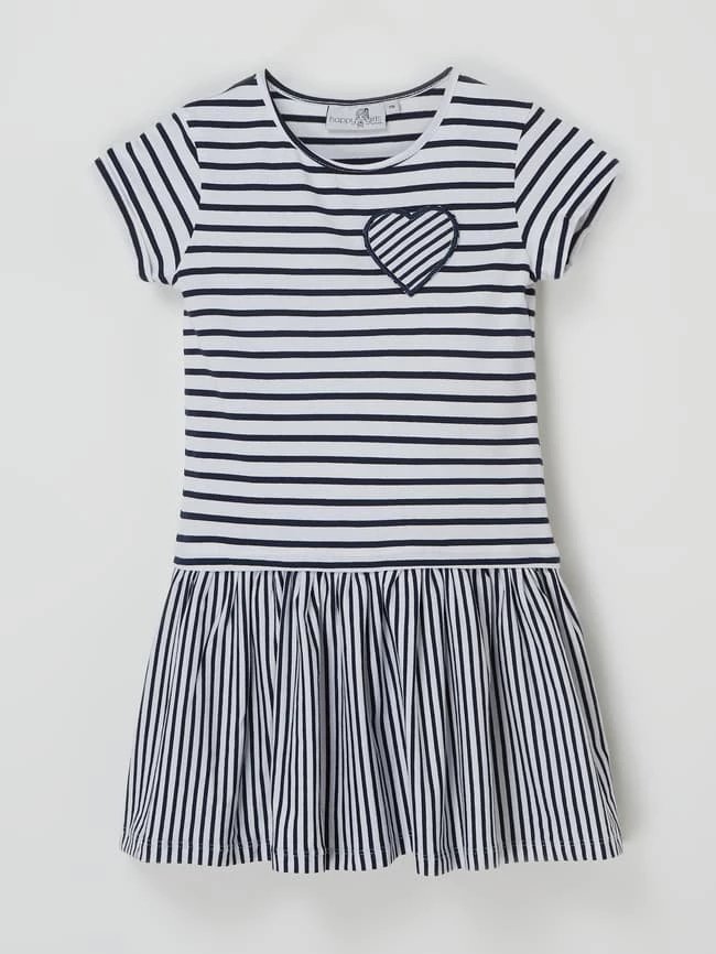 Das Kleid von happy girls ist aus einem Baumwoll-Elasthan-Mix gefertigt. Es kommt in ausgestellter Passform mit Streifenmuster und Rundhalsausschnitt.