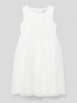 Das Kommunionskleid von happy girls ist aus einem strapazierfähigen Material gefertigt und ausgestellt geschnitten. Es zeigt sich in unifarbenem Design mit Spitzenbesatz sowie floralem Detail.