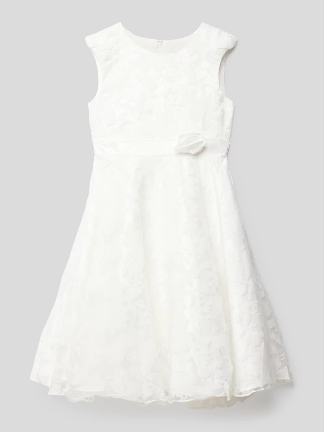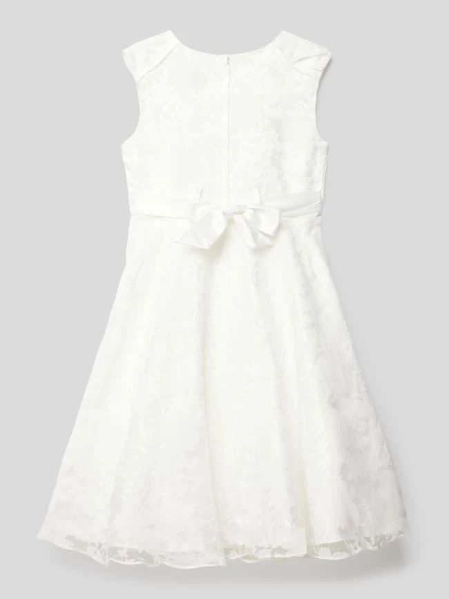 Das Kommunionskleid von happy girls ist aus Baumwoll-Mix gefertigt und in A-Linie geschnitten. Es kommt floraler Applikation, Schleifen-Detail am Rücken und Reißverschluss.