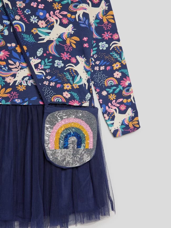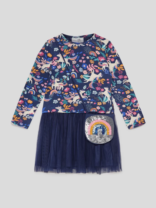 Bestes Angebot 💯 Happy 👧 Girls Sweatkleid Mit Rockpartie Aus Mesh – Marineblau 🎉