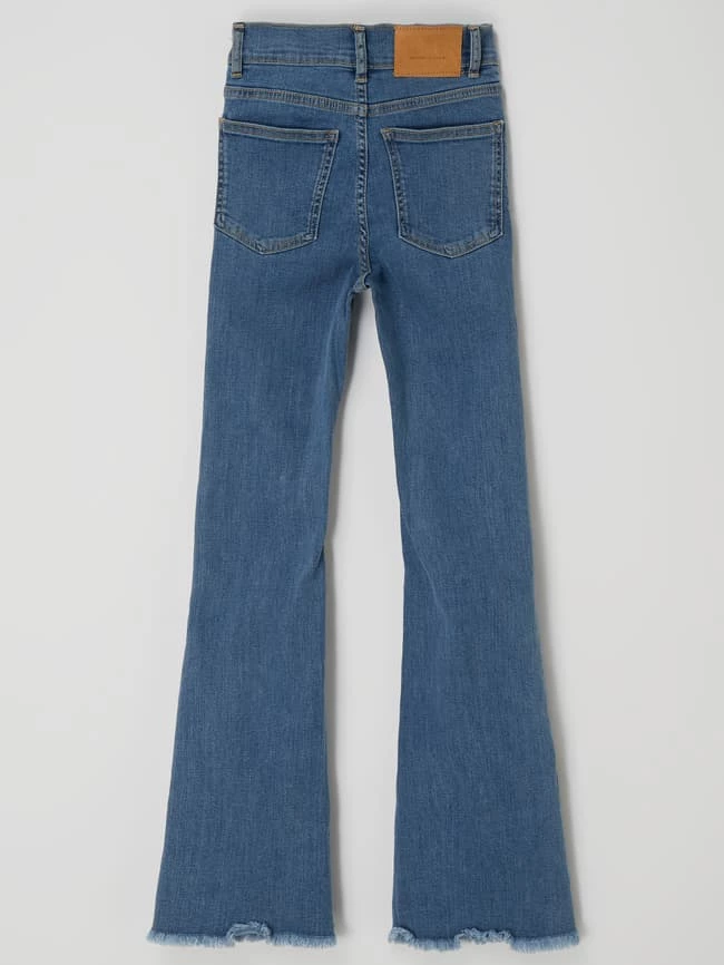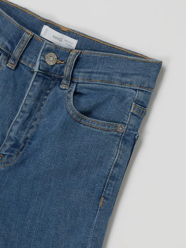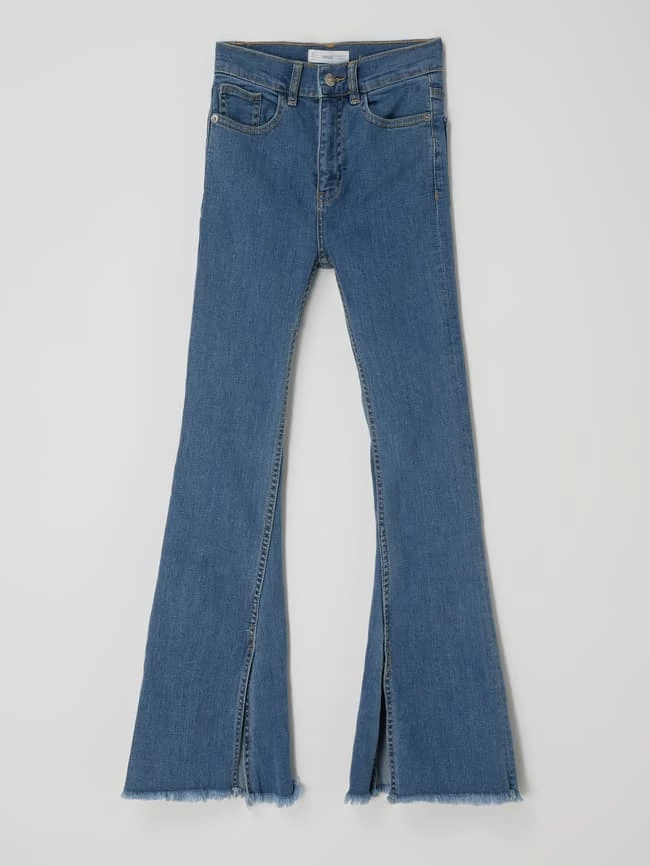 Die Jeans von MANGO ist aus einem Baumwoll-Elasthan-Mix gefertigt. Sie kommt mit ausgestelltem Bein, Eingrifftaschen und Schlitz an den Beinabschlüssen.