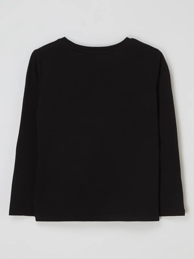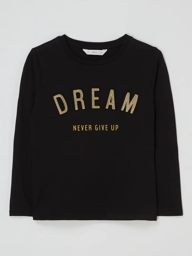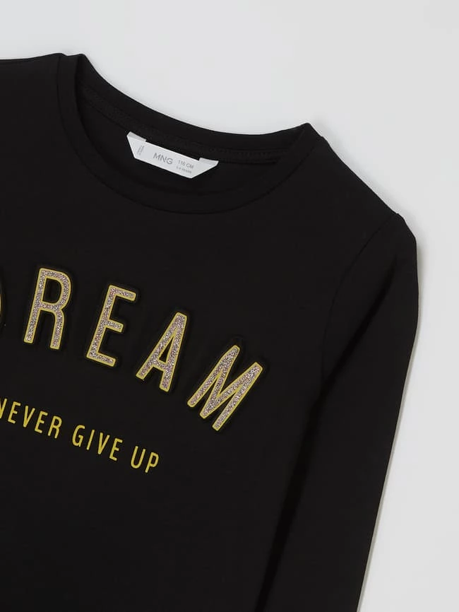 Das Longsleeve von MANGO ist aus reiner Baumwolle gefertigt. Es kommt in gerader Passform mit Rundhalsausschnitt, Message und Glitter-Effekt.