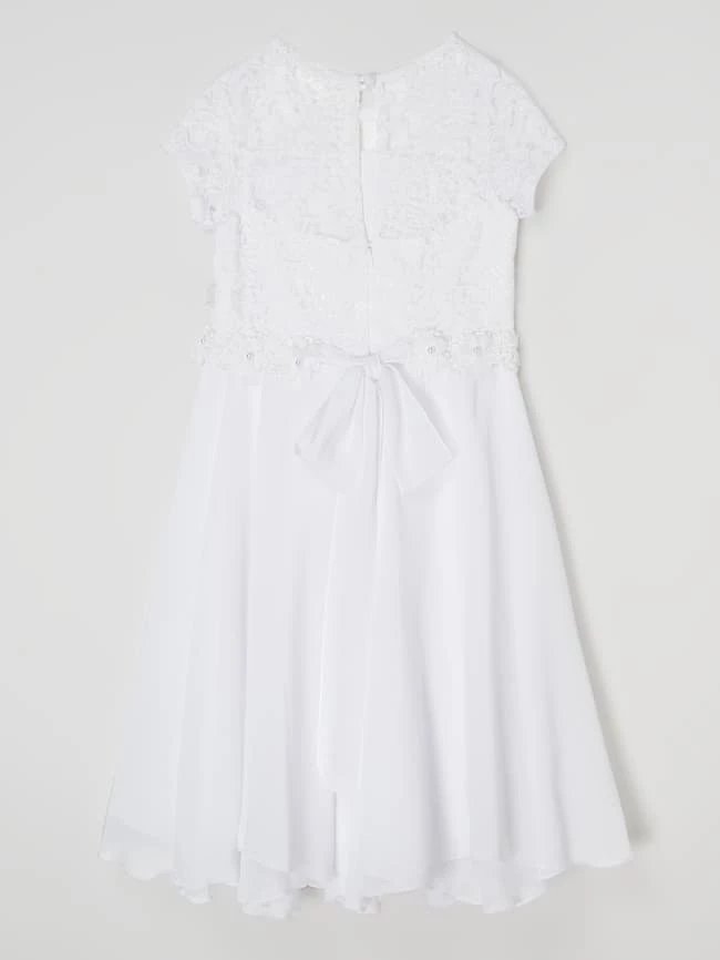 Das Kleid von Monny ist aus floraler Spitze und Chiffon gefertigt. Es kommt mit Rundhalsausschnitt, Zierperlen und Schnürung auf der Rückseite.