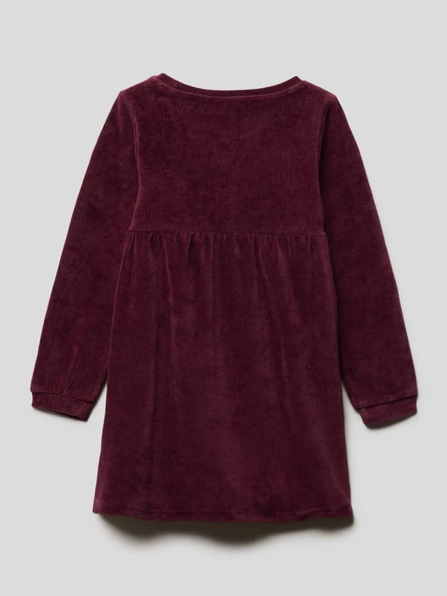 Das Kleid von NAME IT ist aus Bio-Baumwolle und recyceltem Polyester gefertigt und locker geschnitten. Es kommt aus Cord und im unifarbenen Design mit Rundhalsausschnitt und ausgestellter Rockpartie.
