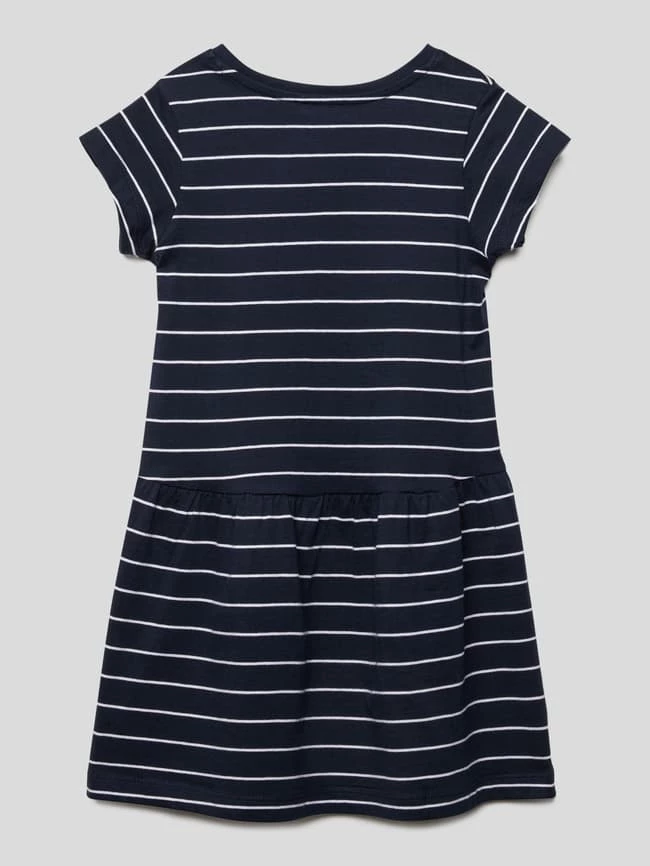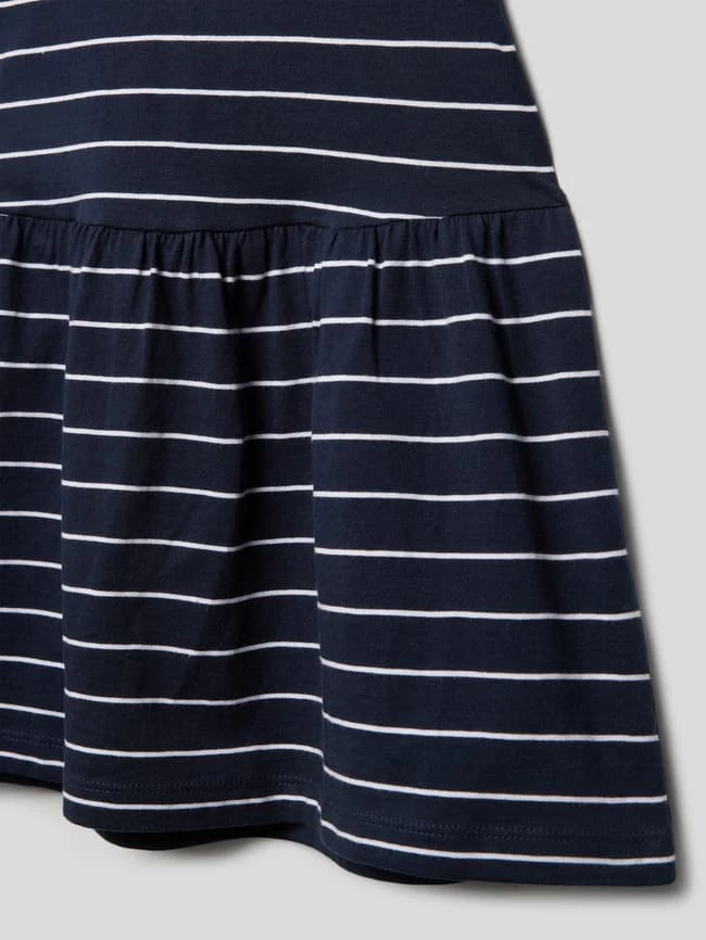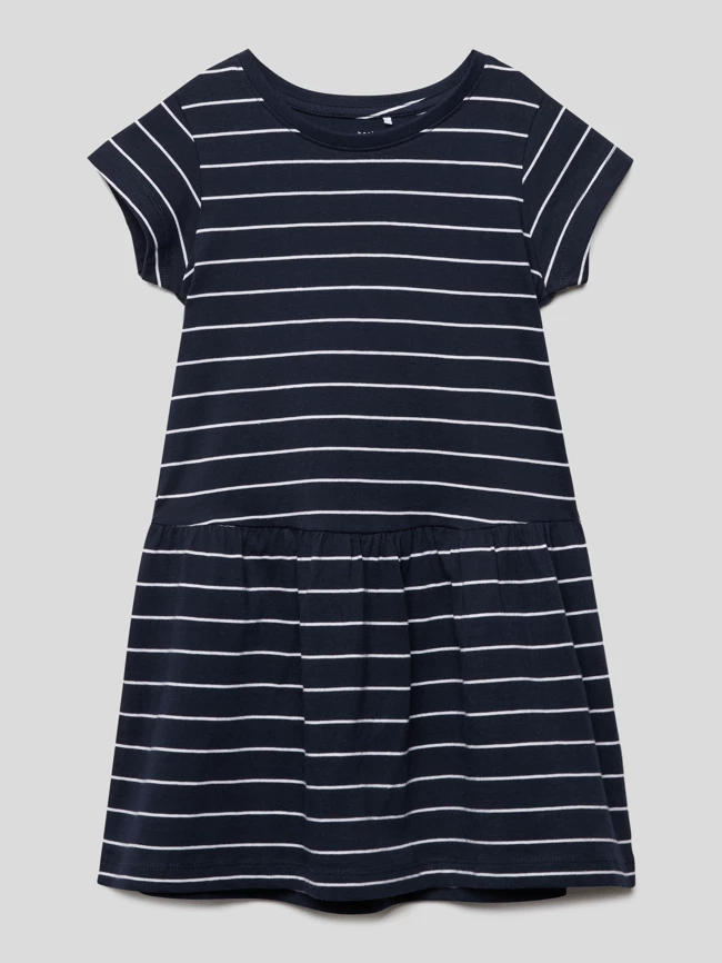 Das Kleid von NAME IT ist aus reiner Baumwolle gefertigt und gerade geschnitten. Es zeigt sich mit Polka Dots, geripptem Rundhalsausschnitt und ausgestellter Rockpartie.