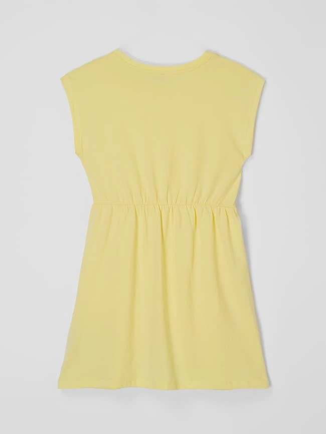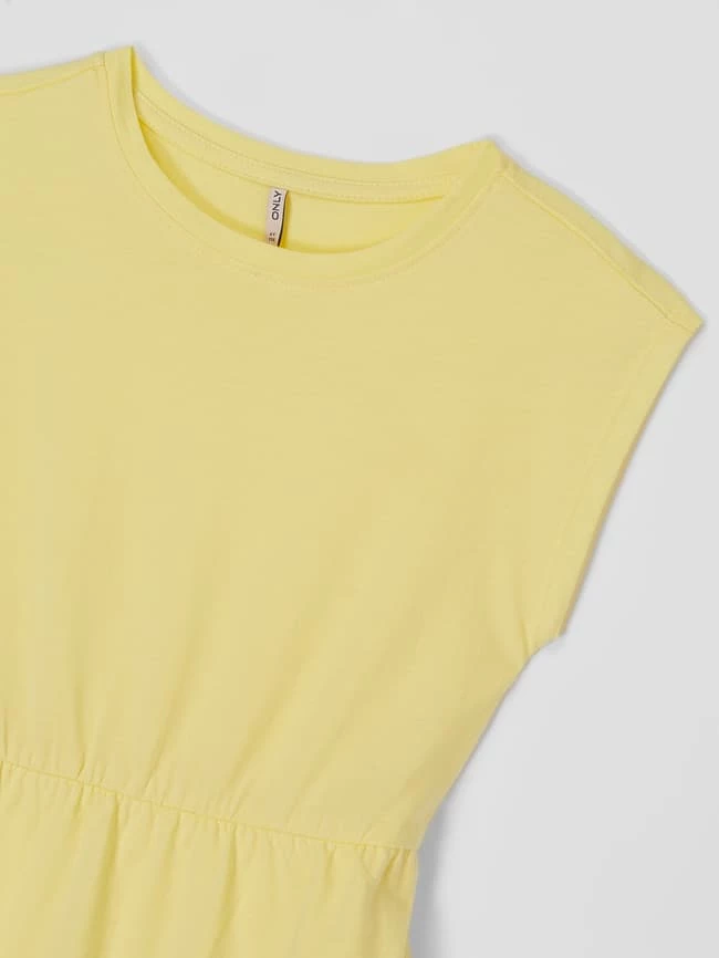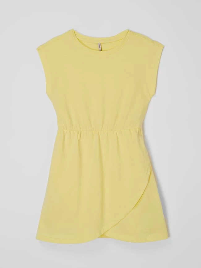 Das Jerseykleid von ONLY ist aus reiner Baumwolle gefertigt und tailliert geschnitten. Es zeigt sich in Wickel-Optik mit Rundhalsausschnitt und Gummizug.