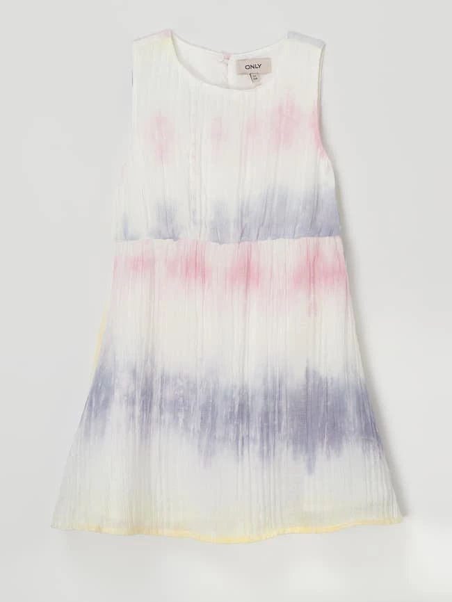 Das Kleid von ONLY ist aus einem Viskose-Elasthan-Mix gefertigt und tailliert geschnitten. Es kommt mit Farbverlauf, ausgestelltem Rockteil und feinen Raffungen.