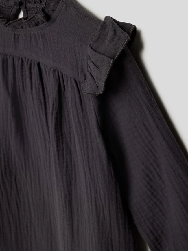 Das Kleid von ONLY ist aus reiner Baumwolle gefertigt und locker geschnitten. Es kommt mit Rüschen, elastischen Ärmelabschlüssen und Knopfverschluss.