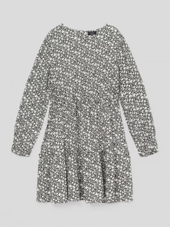 Das Blusenkleid von OVS ist aus reiner Viskose gefertigt und tailliert geschnitten. Es kommt mit Allover-Muster, Schlüsselloch-Ausschnitt und Volantsaum.