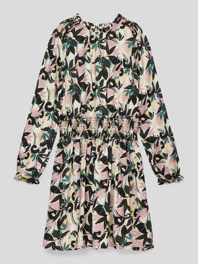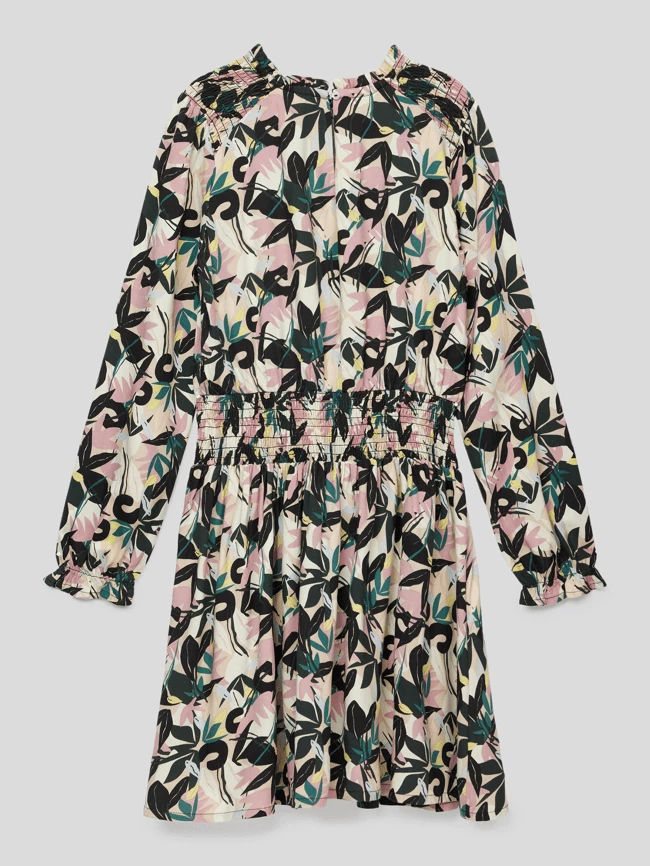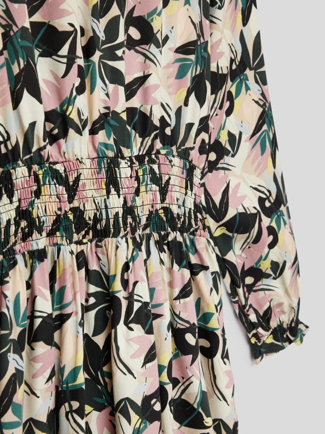Das Blusenkleid von OVS ist aus reiner Viskose gefertigt und ausgestellter Schnitt. Es kommt mit Allover-Muster, Smok-Details und Schlüsselloch-Ausschnitt.