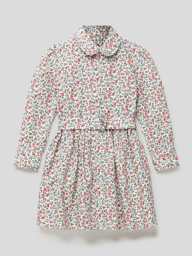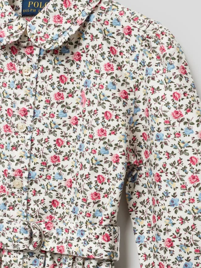 Das Minikleid von Ralph Lauren Childrenswear ist aus reiner Baumwolle gefertigt und in ausgestelltem Schnitt gehalten. Es zeigt sich mit floralem Muster, Polokragen, Taillengürtel und durchgehender Knopfleiste.