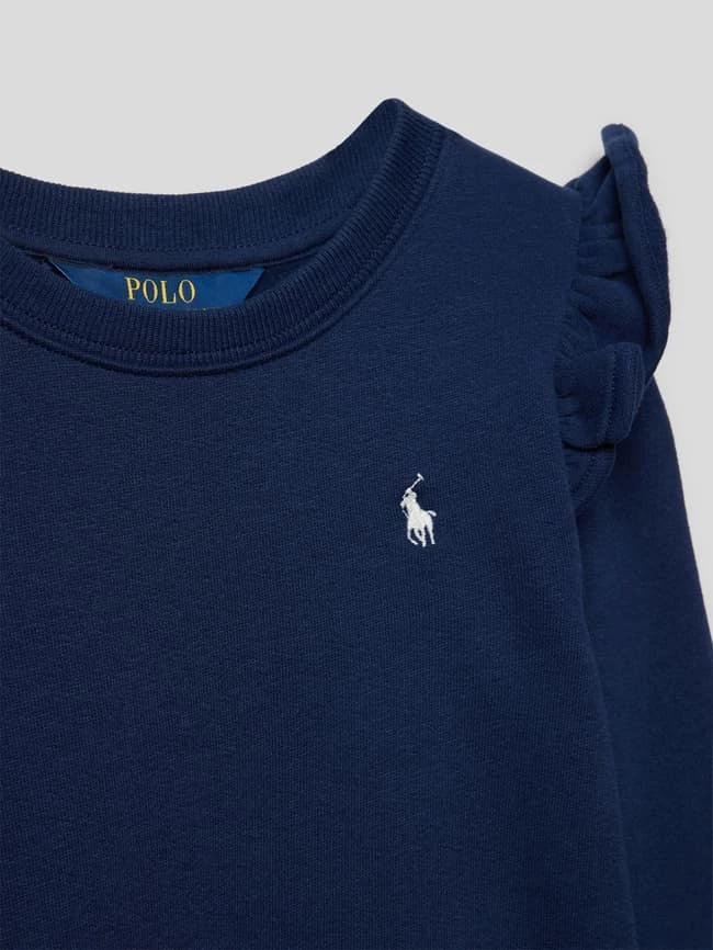 Das Sweatkleid von Polo Ralph Lauren ist aus einem Baumwoll-Mix geschnitten und in ausgestelltem Look gehalten. Es kommt mit geripptem Rundhalsausschnitt, Rüschen und Logo-Stitching.
