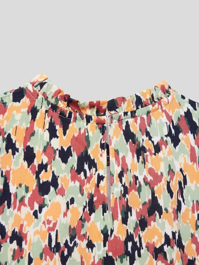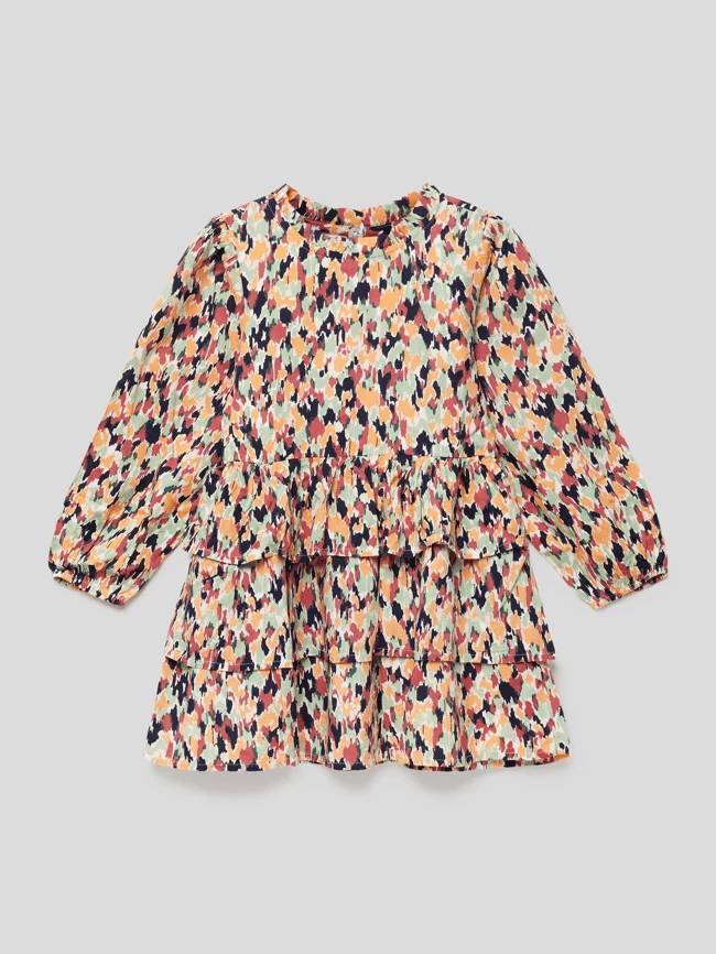Das Kleid von s.Oliver RED LABEL ist aus reiner Viskose gefertigt und tailliert geschnitten. Es zeigt sich mit Allover-Muster sowie Stufen-Look und Schlüsselloch-Ausschnitt.