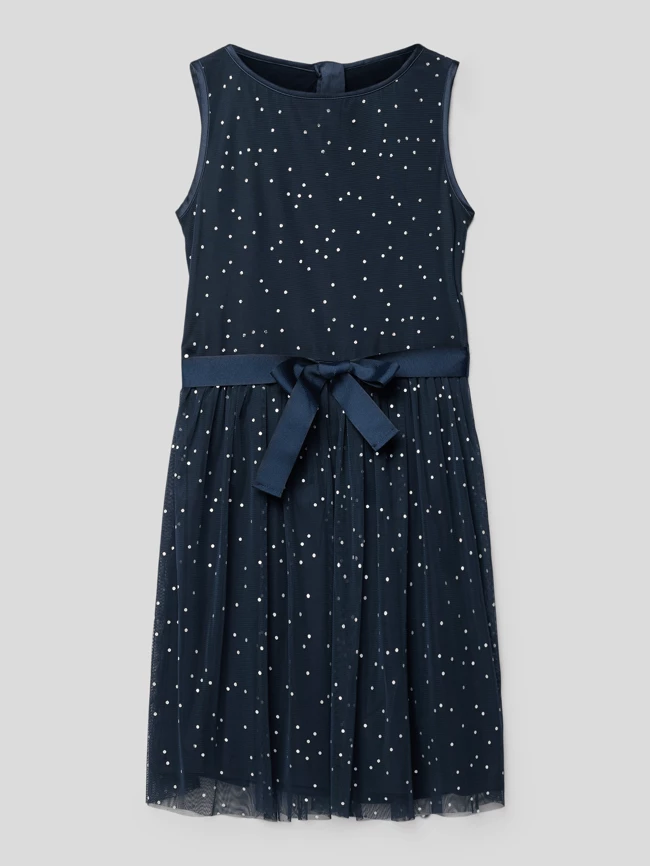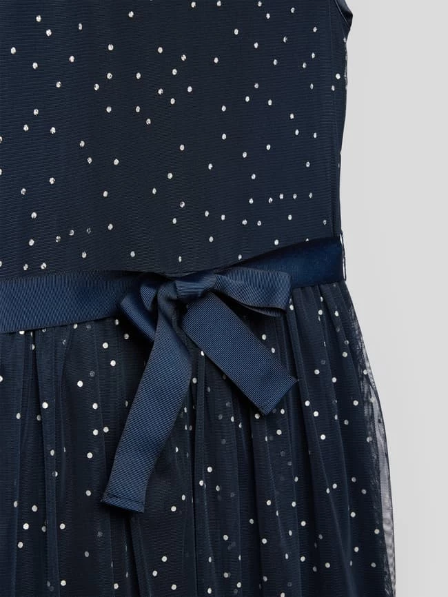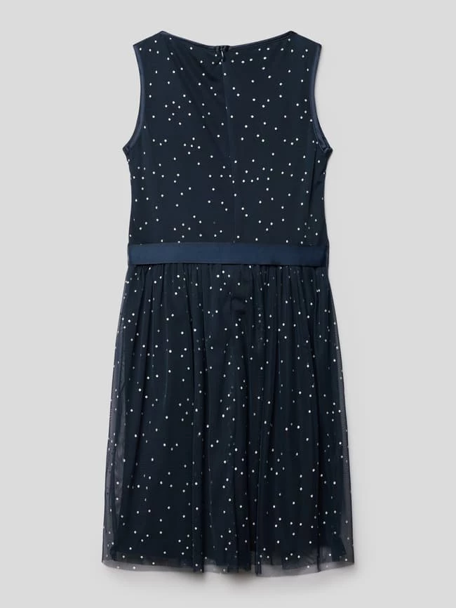 Das Kleid von s.Oliver RED LABEL ist aus strapazierfähigem Material gefertigt und ausgestellt geschnitten. Es kommt mit Punktmuster, Stoffgürtel und blickdichtem Unterrock.