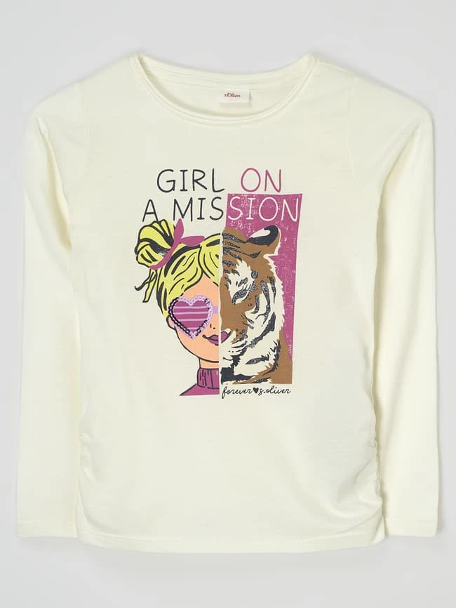 Das Longsleeve von s.Oliver RED LABEL ist aus reiner Bio-Baumwolle gefertigt und gerade geschnitten. Es zeigt sich mit Rundhalsausschnitt und Print mit Pailletten.