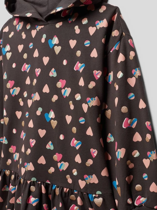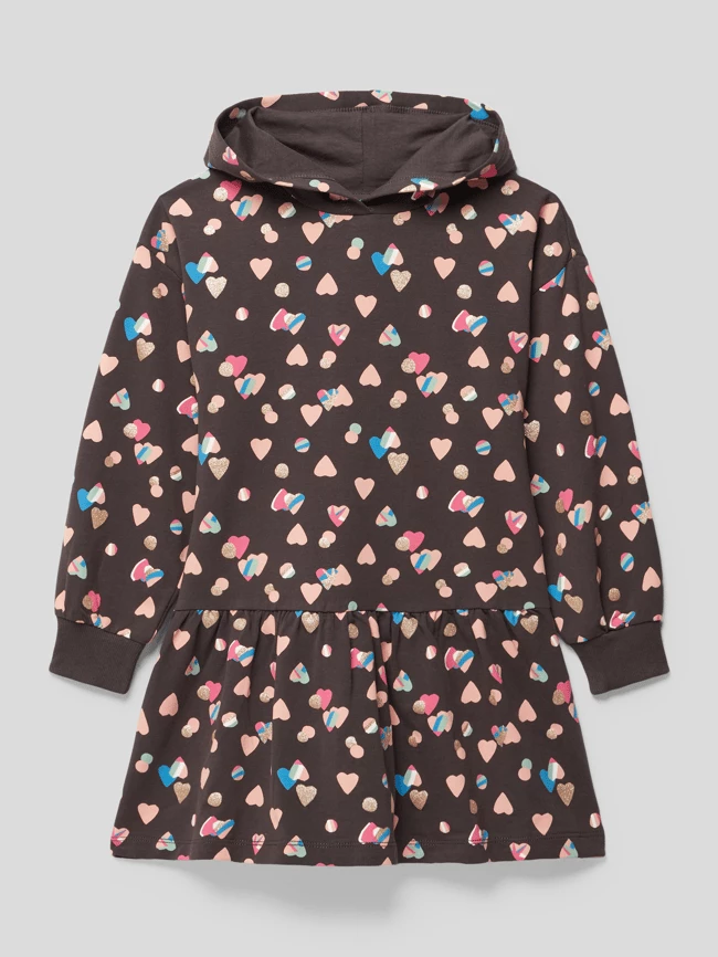 Das Sweatkleid von s.Oliver RED LABEL ist aus einem Baumwoll-Mix mit Elasthan-Anteil gefertigt und tailliert geschnitten. Es kommt mit Allover-Muster und Kapuze.