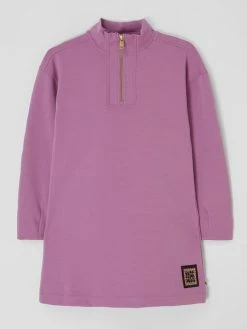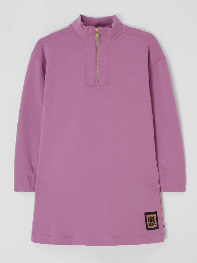 Das Kleid von Scotch & Soda ist aus einer Modalmischung mit Stretch-Anteil gefertigt und leicht ausgestellt geschnitten. Es kommt mit Stehkragen, kurzem Reißverschluss und überschnittenen Schultern.