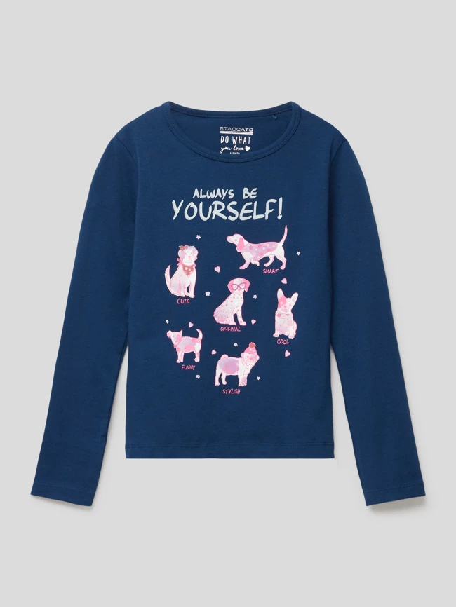 Billig 🛒 Staccato Longsleeve Mit Statement- Und Motiv-Print Modell ‘LT Juli’ – Dunkelblau 🤩