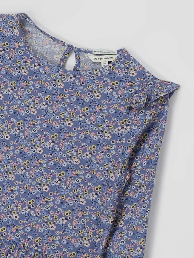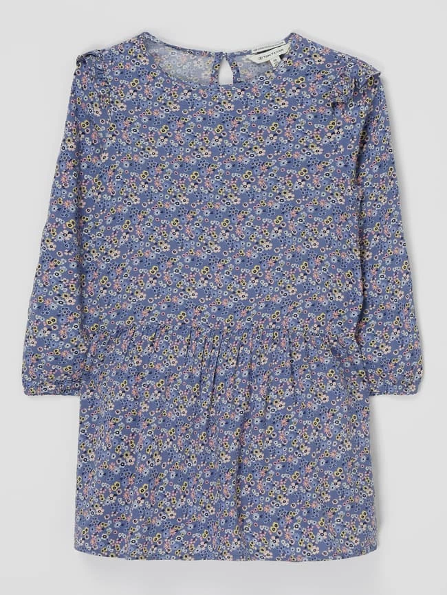 Das Kleid von TOM TAILOR ist aus reiner Viskose gefertigt. Es zeigt sich in lockerer Passform mit floralem Muster, langen Ärmeln und Rüschen.
