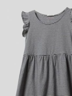 Das Kleid von TOM TAILOR ist aus einer Baumwollmischung gefertigt. Es zeigt sich in lockerer Passform mit Streifenmuster, Rüschen am Ausschnitt und langen Ärmeln.