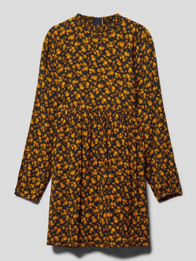 Das Kleid von Tommy Hilfiger Teens ist aus reiner Viskose und schmal geschnitten. Es kommt mit Allover-Muster, gesmoktem Stehkragen, langen Ärmeln und elastischem Einsatz an der Taille.