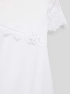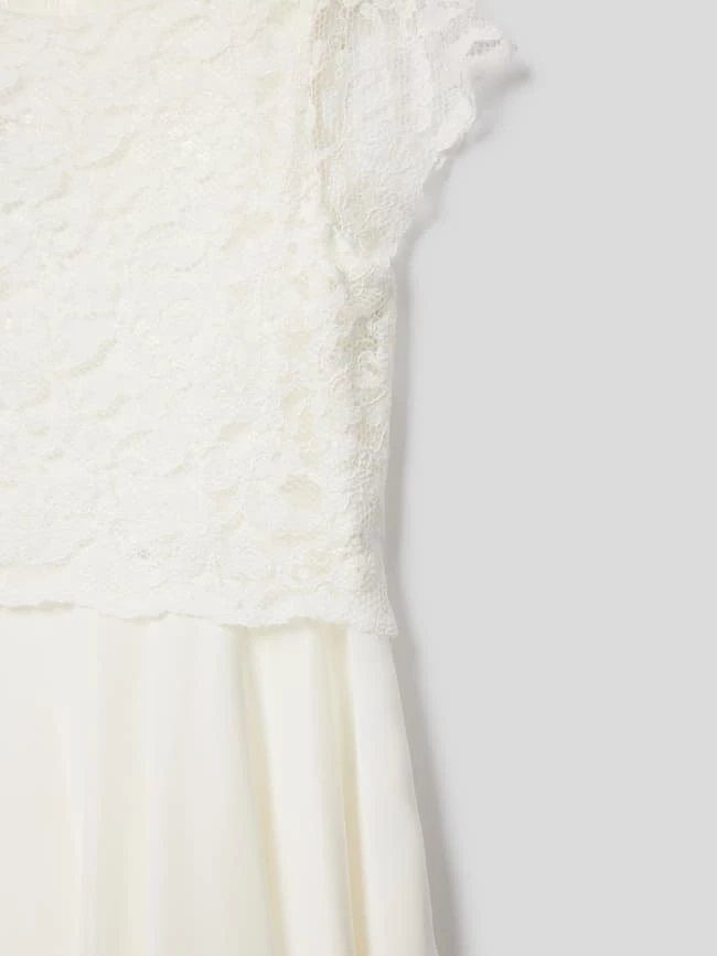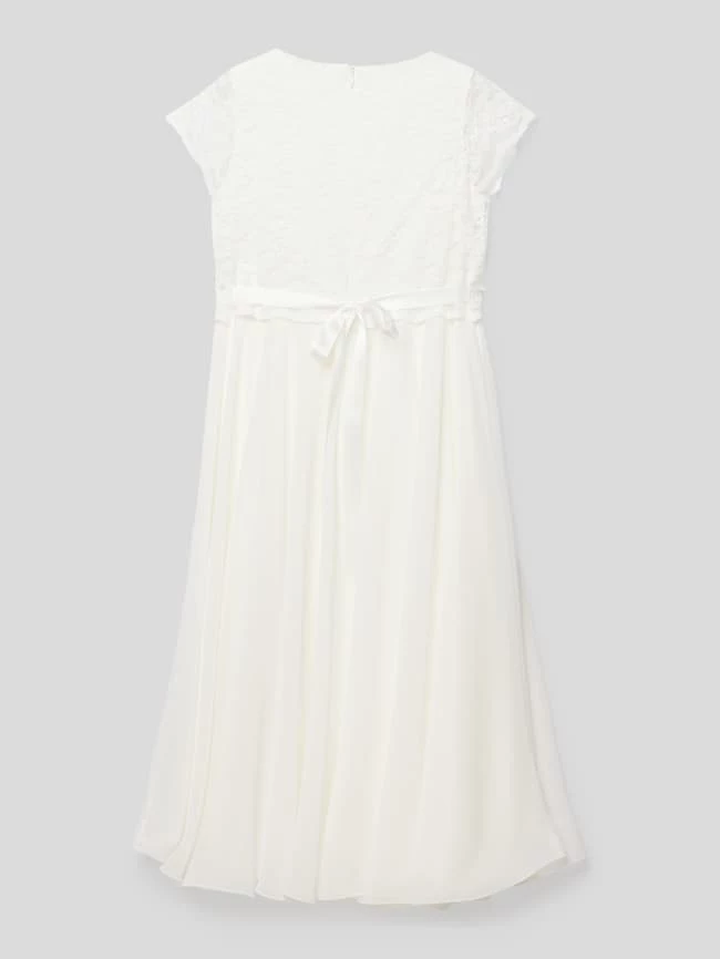 Das Kommunionskleid von Weise ist aus einem strapazierfähigen Material gefertigt und tailliert geschnitten. Es zeigt sich in unifarbenem Design mit Spitzenbesatz sowie Taillenband.